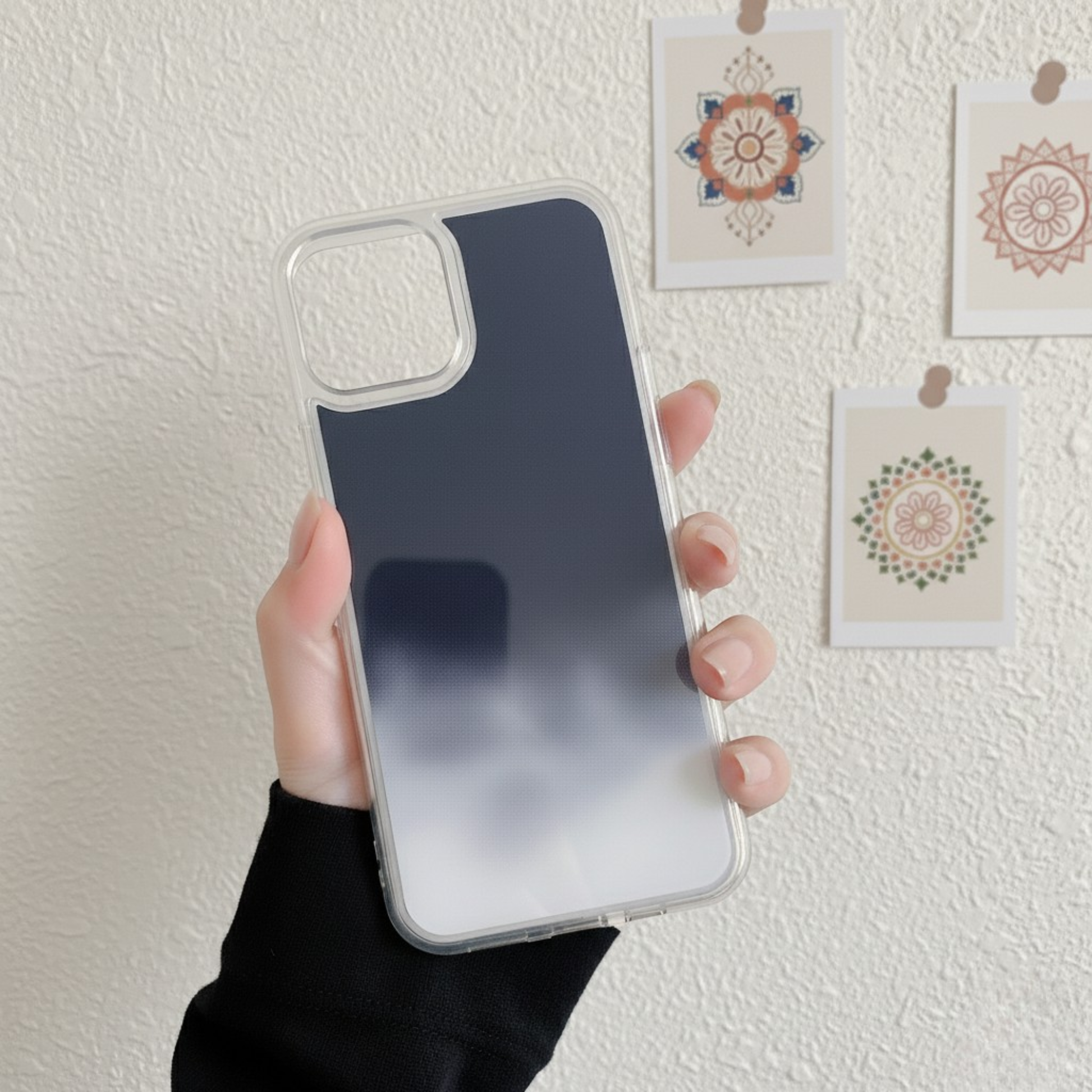 No. The sand gradient and glow layer are sealed inside the case, ensuring long-lasting durability without peeling or fading.